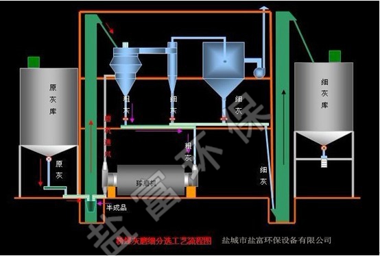 用球磨機進行粉體磨細,這在水泥行業(yè)已經(jīng)應(yīng)用多年,技術(shù)成熟,磨機產(chǎn)品已經(jīng)相對系列化。借鑒國內(nèi)外多種高細高產(chǎn)水泥磨機的原理和結(jié)構(gòu),鹽城市鹽富公司科研部門聯(lián)合了國內(nèi)粉煤灰綜合應(yīng)用名院校南京工業(yè)大學材料科學系,成功研制開發(fā)了粉煤灰細磨專用的球磨機,將燃煤電廠排放的原灰或者粗灰進行磨細,達到成品灰細度。在球磨機后增設(shè)一臺分選設(shè)備,將經(jīng)過球磨機研磨過的煤灰進行分選,分選后將粗灰重新返回球磨機進行超細研磨,生產(chǎn)出能配制高性能砼的 摻合料(微粉),大大提高了粉煤灰綜合利用的經(jīng)濟效益,能夠?qū)崿F(xiàn)粉煤灰的全部綜合利用。